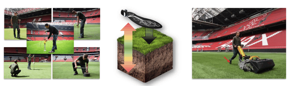 The efficiency is in the quality as well as in the lack of double work. “The grass team of the Johan Cruijff Arena is already walking around all day, so to speak. Data can be collected ‘on the go’, simply via a measuring system right in their shoes. With every single step they take, they gather more data. The Smart Shoes feel as it were, how hard the grass is on a specific spot on the pitch – and how its grip is. With every step, the shoes collect new pieces of information.”