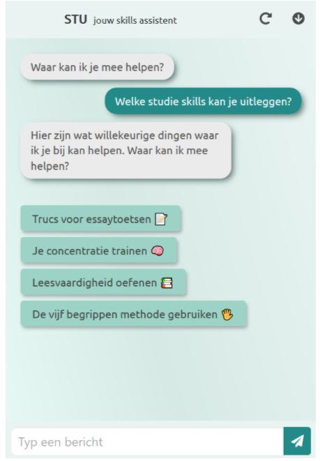 “When we first started designing it, it immediately led to 30,000 questions that had to be answered. That was too much for us at the time. That’s why we started with a simpler subject and created an educational chatbot to teach students study skills. It answers questions like: ‘How do I work in a group? How can I improve my concentration? How do I create a mind map?’ In other words, it’s very practical. But that did provide answers to problems that are very common among students.”