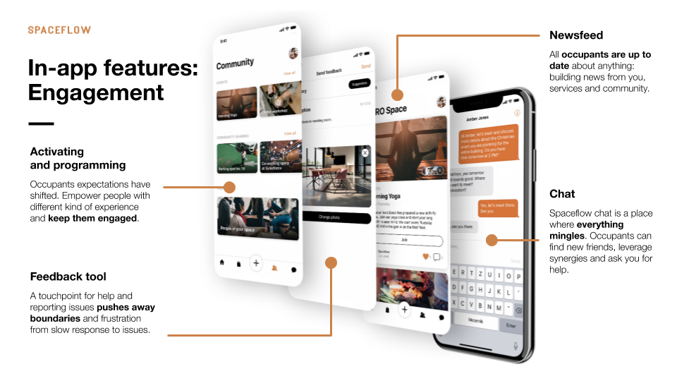 The app has a number of components and modules. For example, we connect our platform with other smart building solutions. To give an example, we can connect it with digital lockers, a parking system or an access system so you don’t need to use physical cards to open the door. Instead, you do that with your phone. Also, we have an in-house team of community managers. This is crucial, because sometimes landlords don’t have the capabilities or the time to deal with new technologies. So, our community managers can help them to bring the project on board and acquire the right content and services for the users. They also help to evaluate what works well, get the right data from the platform and curate the best possible experiences for the tenants.