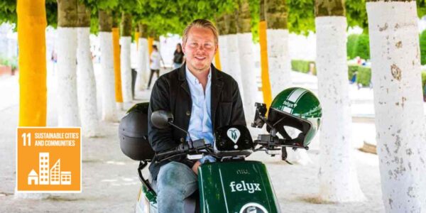 Two years on, Felyx Sharing now has a fleet of 1250 flexible rental scooters in Amsterdam, Brussels, Rotterdam and The Hague. Simplicity is essential here. Users install an app and are able to drive off with just a few clicks of a button. The parking spaces are unattended and located at several locations. The team is ambitious and has big plans ahead for scaling up!