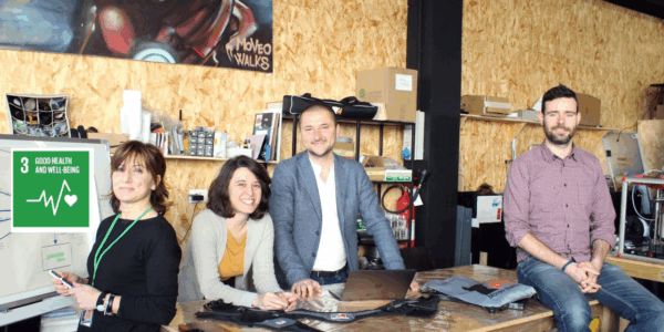 The Exoband equipment from the Italian start-up Moveo Walks is designed to support physical rehabilitation. This soft exoskeleton is geared towards helping people who are suffering from a physical condition, chronic illness or serious injury. Its purpose? To teach people how to walk again. Often these kind of robotized exoskeletons look a bit like … robots.