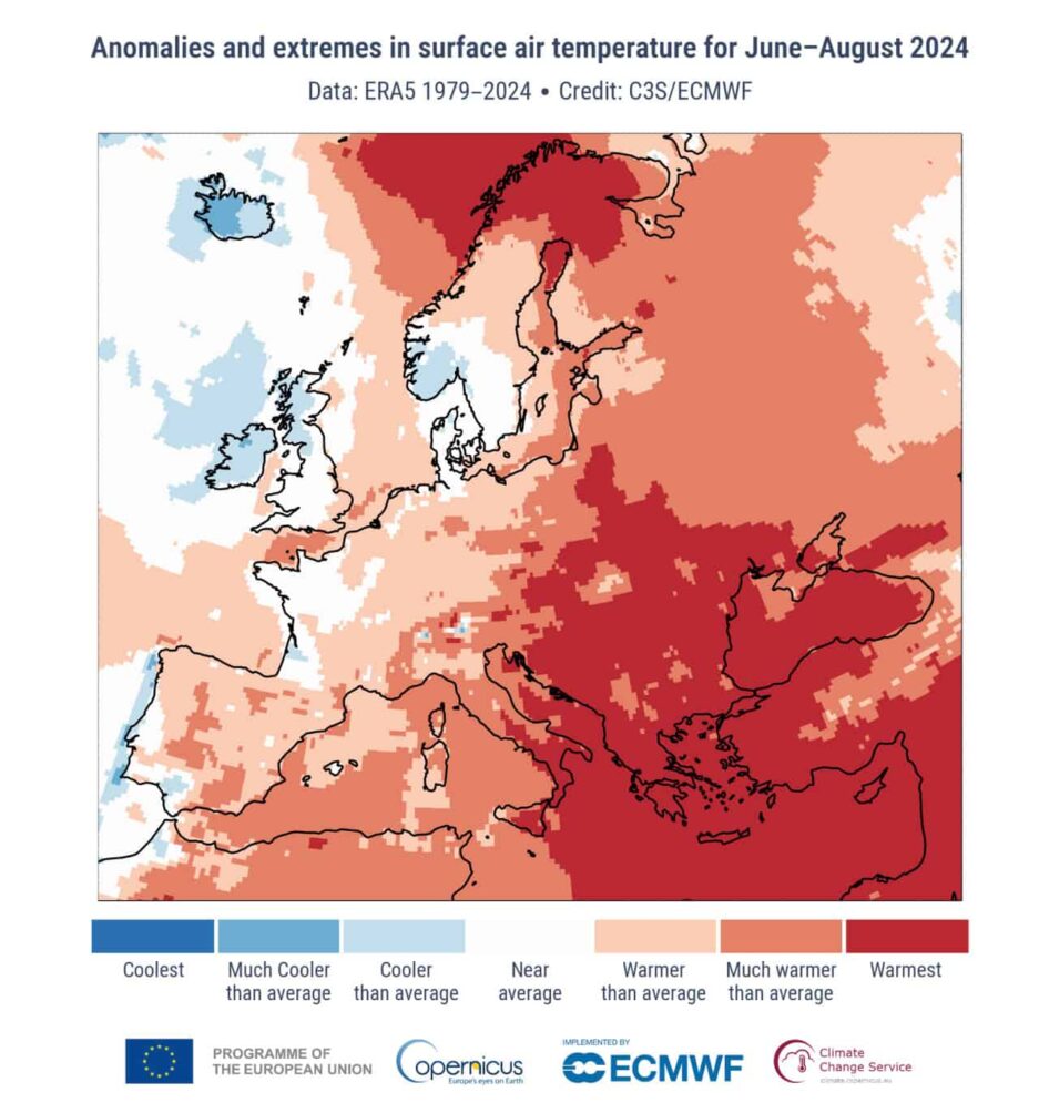 Data collected by the Copernicus Climate Change Service (C3S) was released last week to paint a complete picture of summer 2024. Using measurements by the Copernicus satellite, the service aims to support the European Union’s adaptation and mitigation policies by offering relevant climate change data. Let’s dig into the numbers.