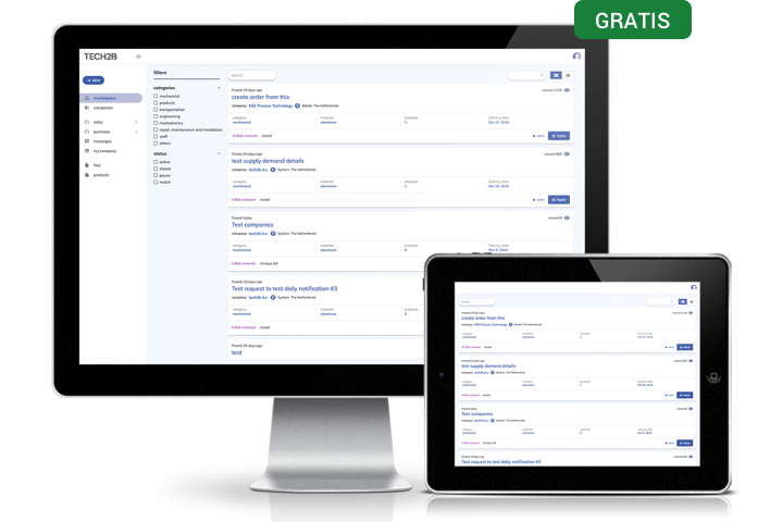 The result is impressive. The platform of Tech2B works a bit like e-Bay or the Dutch equivalent Marktplaats. A buyer or seller of a company places an order whereby they offer or request a product. Buyers and sellers from the manufacturing industry connected to the platform are able to respond to that.