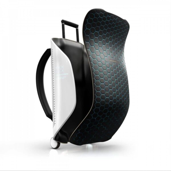 The all-rounder also features an inbuilt smart screen that allows travelers to stay in touch with their friends and families back on Earth. Experience shows that not only weight but also space plays a role when it comes to travel. That’s why Horizn ONE has a vacuum function that compresses luggage to save as much room as possible. On top of that, a silver ion-enhanced compartment provides a bacteriostatic feature which neutralizes germs and odor on clothes. When empty, the luggage bag can be folded flat for easy storage.