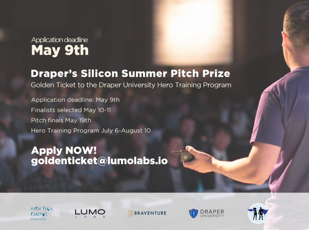 Draper’s Silicon Summer Pitch Prize competition is the result of a partnership between LUMO Labs, Draper University and LUMO Labs’ local ecosystem partners Braventure and High Tech Campus Eindhoven.