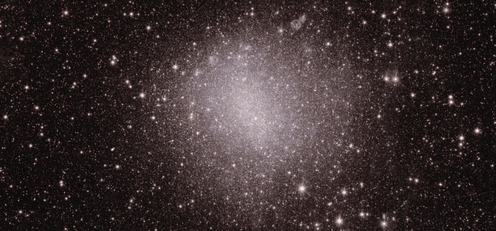 To create a 3D map of the universe, Euclid observes light from galaxies up to a distance of 10 billion light years. Most of the galaxies of the early universe do not look like the typical neat spiral but are irregular and small. These form the building blocks for larger galaxies like ours, and we can still notice some of these galaxies relatively close to us. This first irregular dwarf galaxy observed by Euclid is called NGC 6822 and is located nearby, just 1.6 million light years from Earth.
