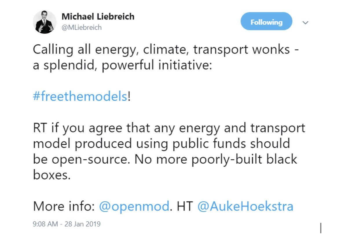 Recently I took an active part in a twitter discussion on this topic where Michael Liebreich launched the hashtag #freethemodels and pointed to the @openmod initiative that already has 500 members. This blog post is just another way to kindle the fire.