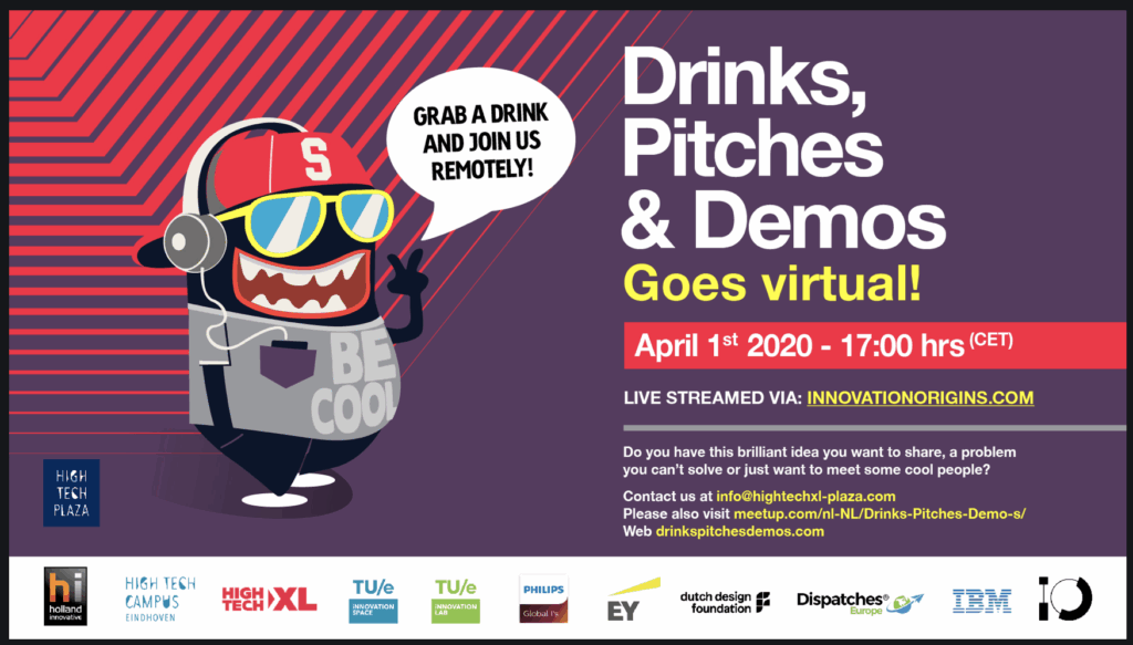 The kick-off is next Wednesday, with the broadcast of Drinks, Pitches & Demos, the monthly event for the innovative ecosystem to inform each other about the latest developments and to help each other with the next steps. DP&D will start at 5 PM, preceded by our own introduction at 4.