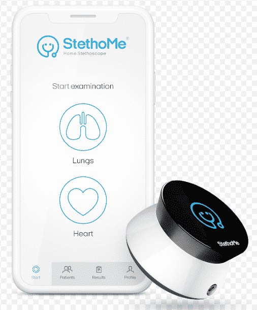 StethoMe’s home stethoscope looks like a curved disc that you can place on your child’s chest or back. It then records the sounds of the heart and lungs. The device uses software to transfer the data generated by the recorded sounds to an app which can be installed on a mobile phone and which guides the home stethoscope user through the recording process.