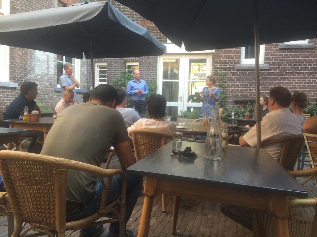 Iedereen wil vooruit, dat is wel duidelijk. En dat dat alleen maar lukt in samenspraak tussen overheid en ondernemers, zoals Van Kaathoven bepleitte, daarover is ook iedereen het eens. Maar opvallend twistpunt was de vraag op welke manier de stad nu het snelste meters kan maken. Door meer macht (en geld) bij de ondernemers zelf te leggen, vond de ene kant. “Want dan zetten we toch gewoon zelf een rij bomen neer, en halen we direct die foeilelijke plasbakken aan bij de ingangen van het Stratumseind weg”, zei eigenaar Frank de Bruijn van De Oude Rechtbank en het Tuchthuis.