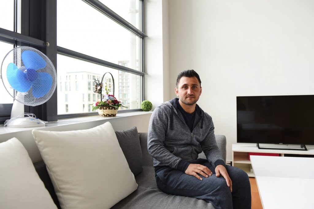 In onze zoektocht naar verhalen van internationals in Eindhoven, trof fotograaf Diewke Ahmad in de besloten Facebookgroep van het appartementencomplex waar ze allebei wonen. Hij stelde zich daar voor, aangezien hij net in zijn loft was getrokken. Op Diewkes verzoek of hij zijn verhaal wilde vertellen, zei hij ja. Als we Ahmad ontmoeten voor het interview, vertelt hij dat hij er net 20 dagen woont. “Ik ben blij dat ik nu hier woon. Ik heb nu al meer mensen gesproken dan toen ik in mijn vorige huis woonde.” Ahmed is sinds tweeënhalf jaar in Nederland. Hij woonde eerst in een asielzoekerscentrum, of kamp zoals hij het zelf noemt, en woonde ook nog een tijdje in Oss. En nu dus hier op Strijp S. “Een vriend die ik heb leren kennen in het kamp, woont ook in Eindhoven. Dat vind ik fijn. Eindhoven is ook wat groter dan Oss en daardoor is er meer te doen. Ik kom uit Aleppo, een stad met zes miljoen inwoners. Dan zijn Oss en Eindhoven wel even wennen.”