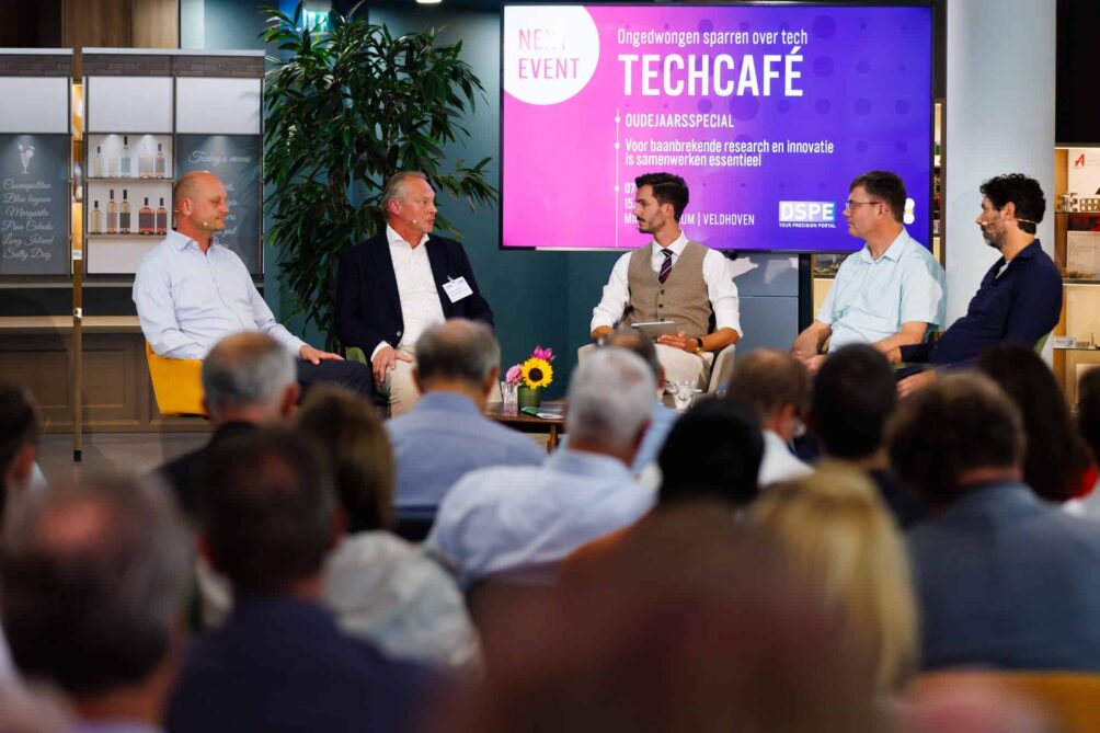 Onder leiding van Maarten Roos kregen ruim 150 belangstellenden deze keer alles te weten over contaminatie in de high-tech maakindustrie, een steeds belangrijker onderwerp vanwege de toenemende nauwkeurigheid van machines. In de toeleverketens van bedrijven als ASML, Thermo Fisher Scientific en vele andere is het begrip inmiddels niet meer weg te denken. Tijdens het Techcafé op 14 september ging Maarten Roos in gesprek met vier experts: