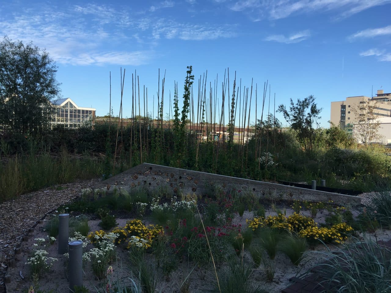 De sponstuin is een cirkelvormige tuin die in verschillende parten is verdeeld en sinds deze zomer toegankelijk is. Elk part bestaat uit verschillende bodemlagen van verschillende soorten grond, en heeft een andere beplanting.