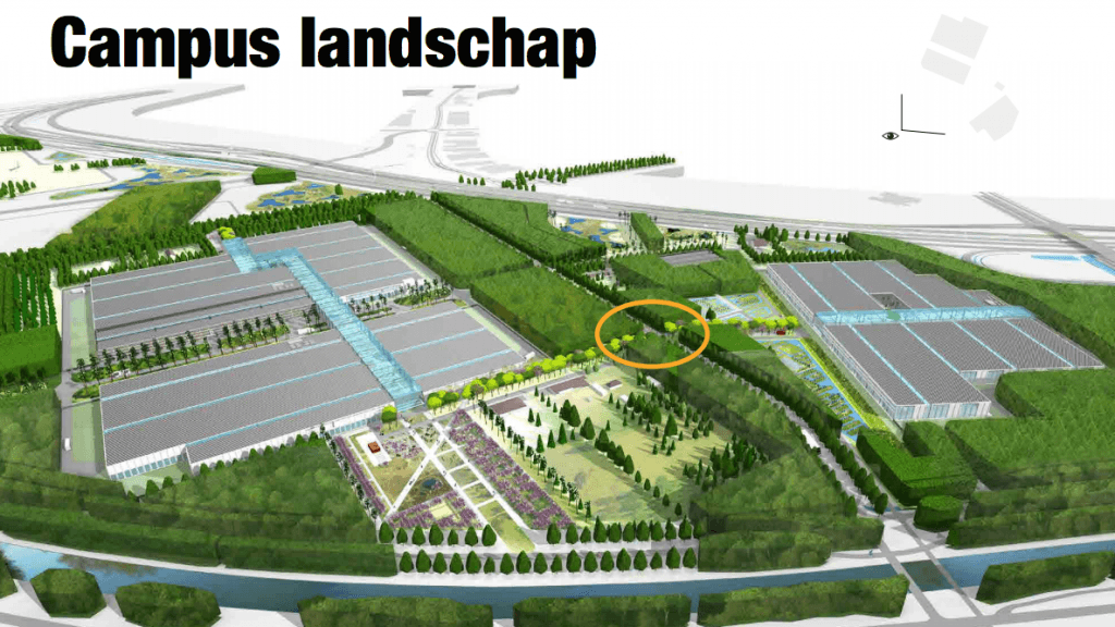 Ander opvallend aspect is de wijze waarop het vervoer tussen de gebouwen van BIC geregeld zou moeten worden. Dona laat tekeningen zien van monorails met hangcontainers. “Geen vrachtverkeer tussen de clusters op de campus. We richten alles zo in dat het bedrijfsleven én het gebied zelf er sterker van worden.”