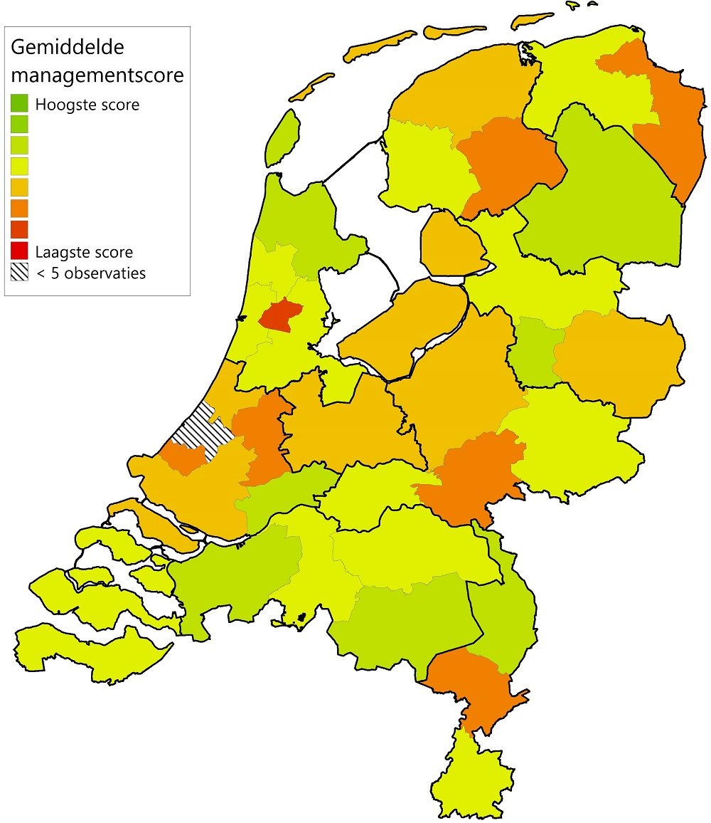 De grootste regionale verschillen liggen op het gebied van operationeel management en prestatiemanagement. Op het gebied van doelenmanagement en personeelsmanagement, waar Nederlandse bedrijven over het algemeen laag op scoren, is de regionale variatie juist het kleinst. Waar bedrijven in Zuid-Nederland vooral in excelleren, is operationeel management, terwijl bedrijven in West-Nederland relatief slecht scoren op doelenmanagement. “Met andere woorden, bedrijven in Zuid-Nederland zijn goed in het optimaal inrichten van het productieproces en het minimaliseren van verspilling, terwijl bedrijven in de Randstad onder andere meer aandacht kunnen besteden aan de balans tussen financiële en niet-financiële doelen.”