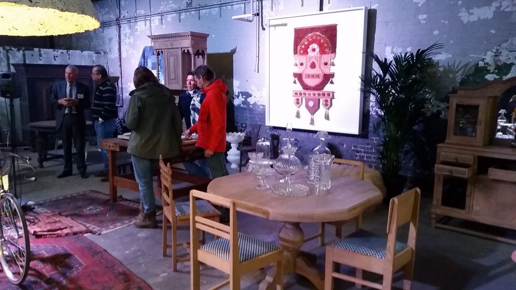 De tafels van het restaurant – vanzelfsprekend ook gerecycled en gezandstraald – zijn vandaag al druk bezet. Van Beers’ medewerkers, veelal dezelfde mensen die betrokken waren bij de productie van haar producten, lopen af en aan met lunches en koffiehappen. Van Beers hoopt met de opbrengst van het restaurant iets goed te maken van de grote investering die ze moest doen om haar expositie in de VDMA mogelijk te maken. Ook de meubels zelf zijn trouwens te koop.