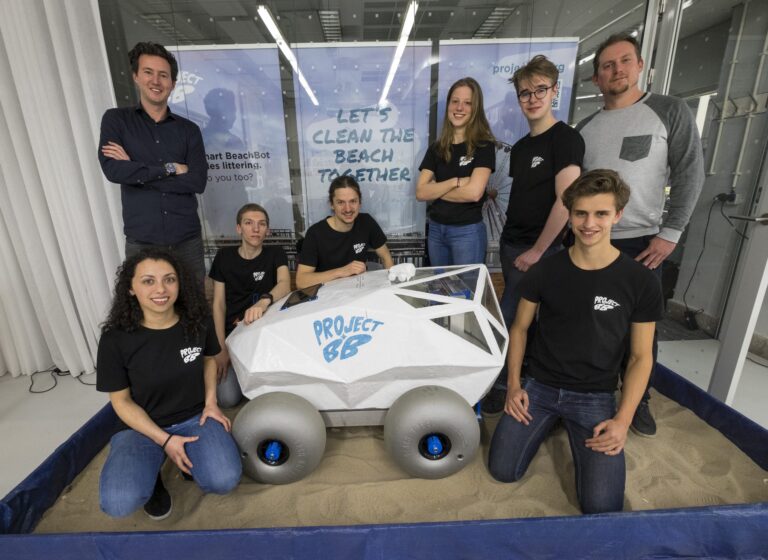 Haagse robot helpt op World Clean Up Day het strand schoonmaken