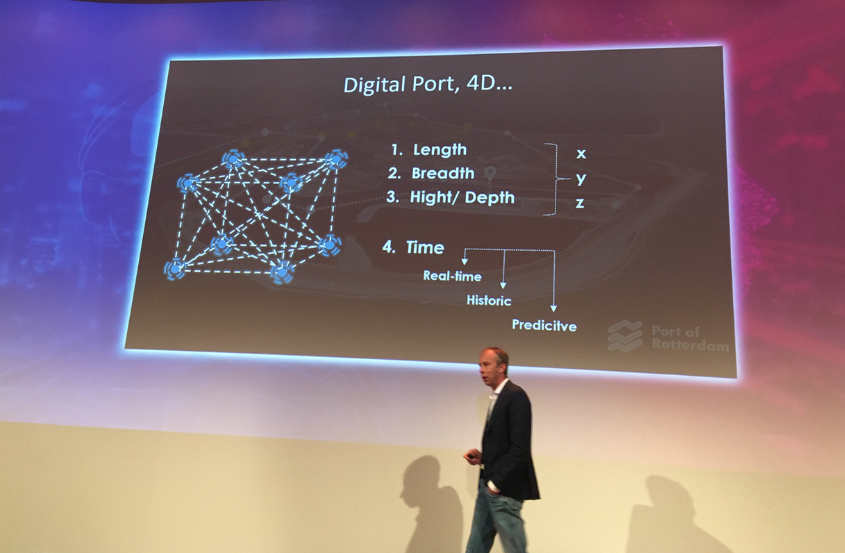 Als voorbeeld van de voordelen legde Blokhuis uit hoe Cisco samen met onder andere software fabrikant IBM de haven van Rotterdam uitrust met een netwerk van sensoren. Ze hangen aan weermasten, kades en meerpalen. Daardoor heeft het havenbedrijf de beschikking over een ‘digitale twin’ van de haven. Daarmee proberen ze uit te vinden hoe de ideale ‘smart’ haven zou moeten werken.
