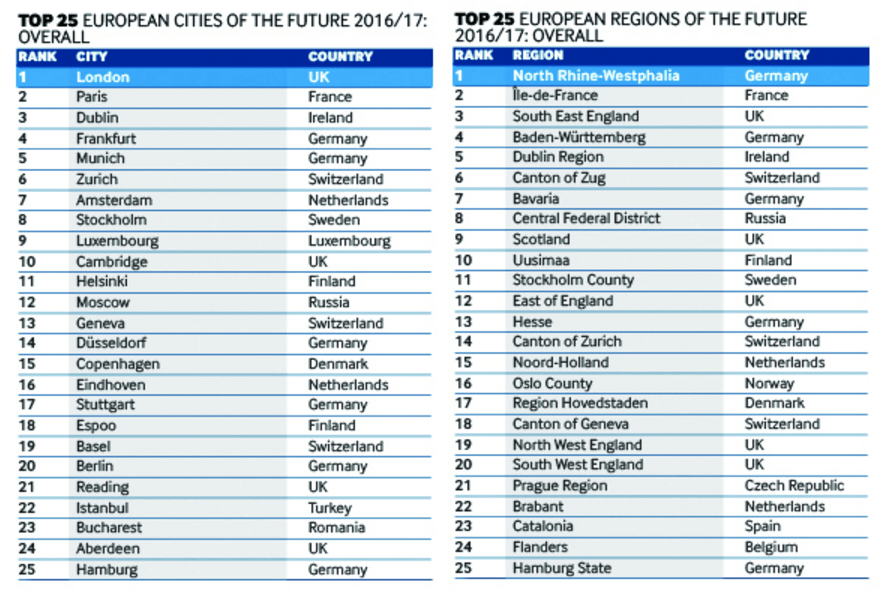 De stad Eindhoven heeft een 16e plaats bemachtigd, boven steden als Hamburg, Berlijn en Basel, maar moet het onderspit delven tegen London, Parijs en Amsterdam. Dat was nogal een teleurstelling; twee jaar geleden was Eindhoven nog derde. Het Eindhovens Dagblad sprak over een ‘duikeling’ en het FD constateerde ‘Eindhoven zakt flink’.