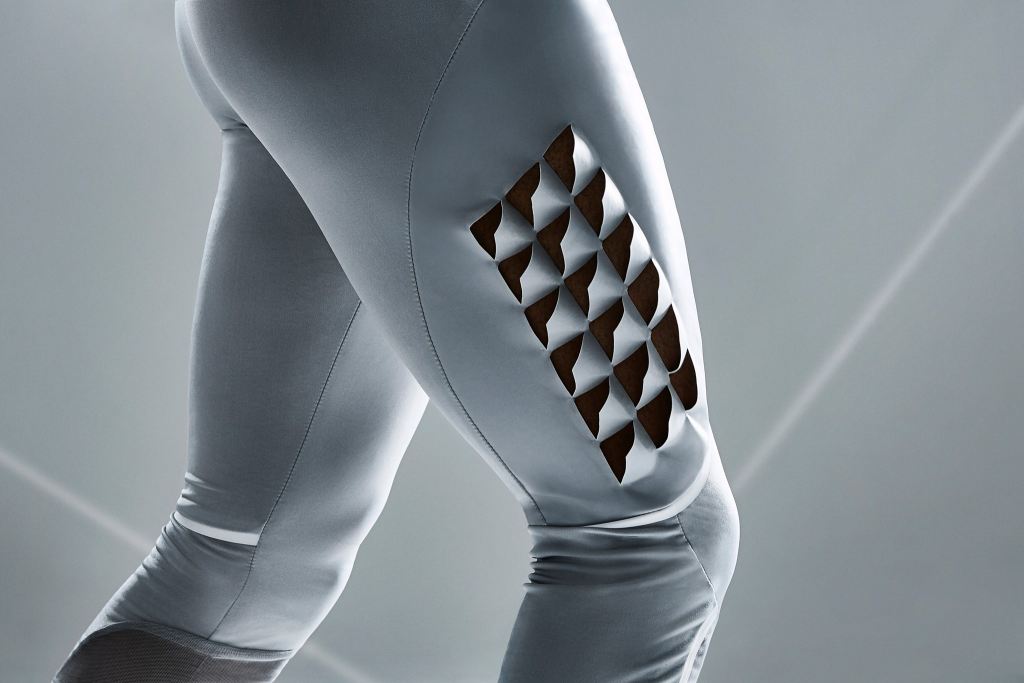 “De benadering in dit project was erg conceptueel en experimenteel”, zegt Pauline van Dongen in de video. “Het ging vooral om materiaalonderzoek. Het Skynfeel materiaal was echt super om mee te werken. Het is zacht, dun en laat je alles voelen. We hebben dit speciale patroon zo gemaakt dat de atleet met de bewegingen van zijn lichaam een soort luchtvakjes laat ontstaan die hem als het ware optillen tijdens een sprong.”