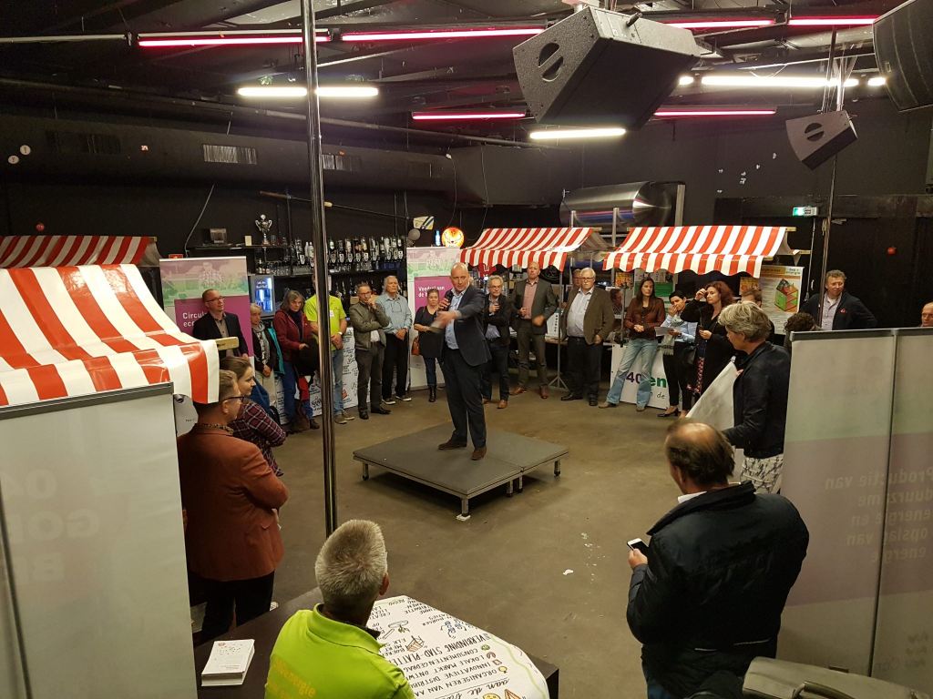 Om dat een beetje in de goede richting te duwen beloofde het drietal niet alleen ook het volgende duurzaamheidscafé te organiseren, maar ook daarbuiten voor de verbinding te gaan zorgen tussen alle gepresenteerde initiatieven. “Het grote verhaal moet gevolgd kunnen worden, anders haken mensen af. Dus gaan we bloggen, vloggen en de straat op om dat verhaal te vertellen. Zodat iedereen straks weet wat hij kan verwachten. En kan bijdragen.”