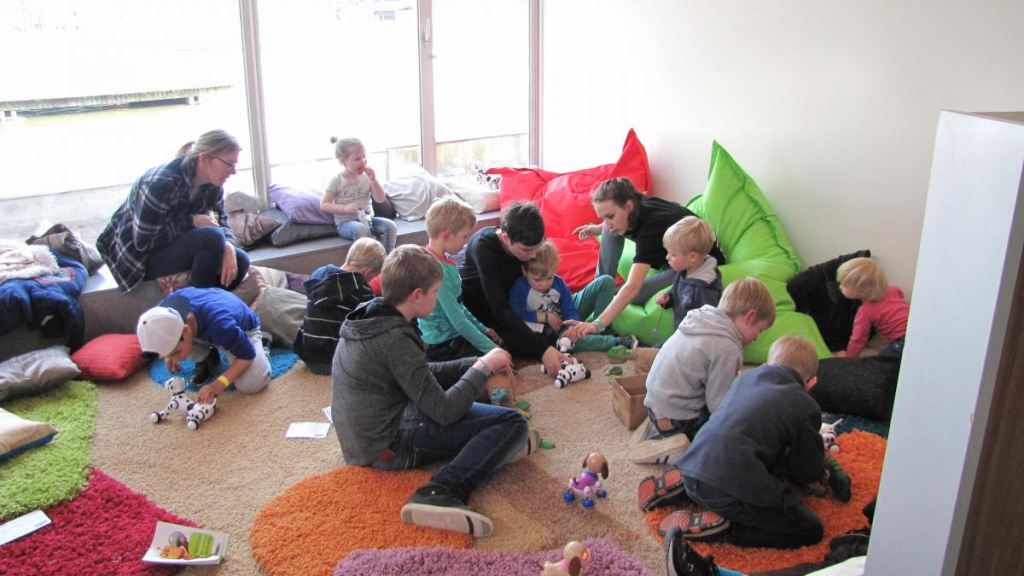 Naast de voorbereidingen op de wedstrijden was er vandaag nog veel meer te zien en te doen voor de bezoekers. Schoolklassen uit Eindhoven en omstreken zijn massaal naar de RoboCup gekomen om mee te doen aan leuke technische workshops, zoals het maken van eigen robots, en zich te laten verrassen door demonstraties, zoals de muziekrobots van Kolja Kugler. De muziek makende robots kregen veel aandacht van al het publiek, van jong tot oud. Dit zal de komende dagen waarschijnlijk niet anders zijn; tot en met zondag geven de robots elke dag optredens om 11:00, 13:00, 15:00 en 17:00 uur. De kinderen die vandaag door het Evoluon liepen, waren ook enthousiast over de kindercolleges en de knuffelrobots waar ze even heerlijk mee konden spelen en uitrusten. De hondjes en dino’s waren verreweg het populairst. Kom het deze week vooral ook zelf even uitproberen.