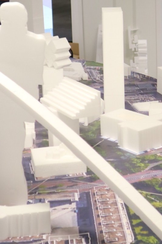 Midden op het Stadhuisplein staat tijdens Dutch Design Week de ruimte van ICI Eindhoven: We komen eraan. Dit is een platform, gemaakt voor het publiek om bij te dragen aan de discussie over de toekomst van Eindhoven. Een grote maquette met bouwkundige ideeën voor de toekomst van de binnenstad staat midden in de ruimte. Winy Maas, stedenbouwkundige, architect en een van de ambassadeurs van Dutch Design Week, licht toe welke ideeën er tot nu toe zijn: “We zijn er zonder restricties en ‘ja maars’ mee aan de slag gegaan. Dit zijn de eerste ideeën, ontwikkeld samen met de TU Eindhoven en TU Delft.” Maas is deze zomer ook aangesteld als supervisor voor de ruimtelijke plannen voor de binnenstad.