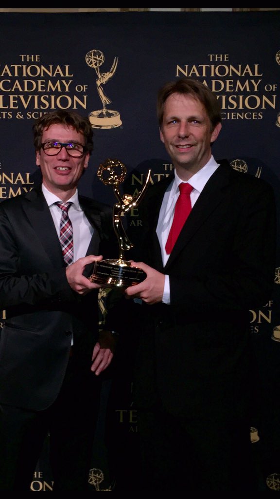 Het was al een tijdje bekend dat ze ‘m zouden krijgen, maar vannacht was het dan eindelijk zover: een Emmy voor de anti-piraterij-activiteiten van Civolution. Lees hier alles over het hoe en waarom. Op de foto: Jaap Haitsma (rechts) en Alex Terpstra. Het commentaar van Alex: “We’ve got ‘m!”