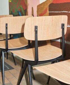 Misschien heb je er nog één op zolder staan en de kans is groot dat je op deze stoel nog een proefwerk wiskunde of je eerste les Nederlands hebt gekregen. Van de foto herken je ‘m vast: de Result-stoel. Deze stoel is in de jaren vijftig al ontworpen door Friso Kramer en Wim Rietveld, speciaal voor Ahrend uit Sint-Oedenrode. En dat bedrijf brengt de stoel nu samen met de hele collectie waar die deel van uitmaakt opnieuw uit.