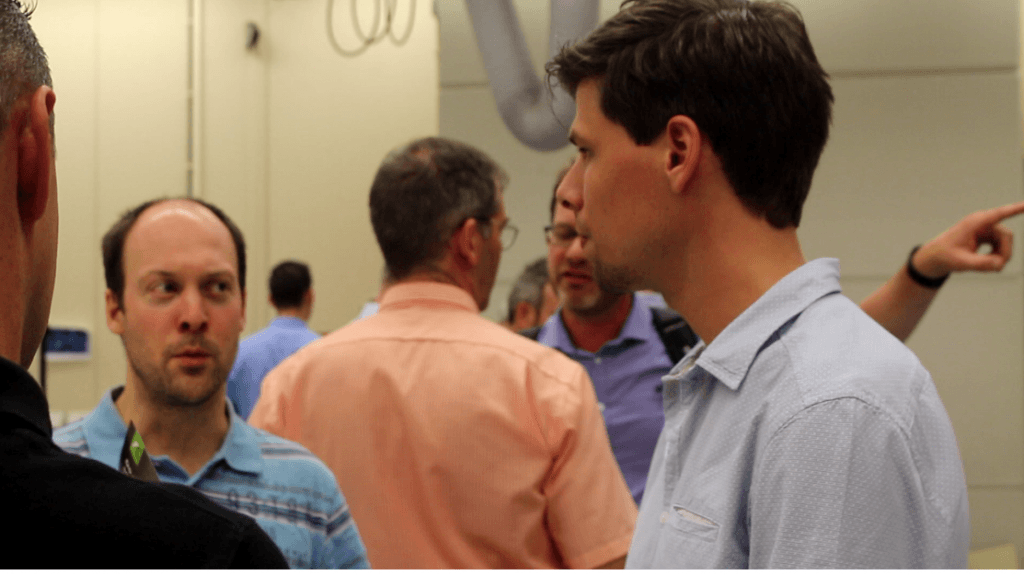 Verbindingen leggen, ontmoeten en versterken. Dat is het doel van deze avonden zegt Bert-Jan Woertman. “Niet alleen de kleintjes, maar ook the usual suspects zoals ASML, Philips en NXP komen hier kijken. Dat is ook het mooie, we werken niet met inschrijvingen. We zien wel wie er op komt dagen. Soms komt er iets uit, soms niet. Maar ik weet bijvoorbeeld zeker dat de jongens van Aucasi veel aan zo’n tip hebben, zulke vragen stellen investeerders ook. Misschien dat ze nog een keer met Eichhorn gaan praten – dat zou ik ze van harte adviseren – maar de verbinding is in ieder geval hier tot stand gekomen.”