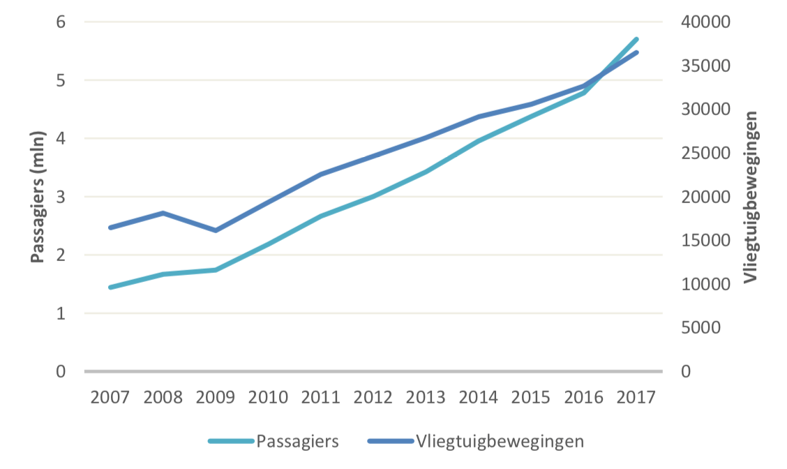 – Bovendien draagt de luchthaven ook bij aan de toegevoegde waarde in de provincie en regio. Dit is €125 miljoen in de provincie en €110 miljoen in de regio;