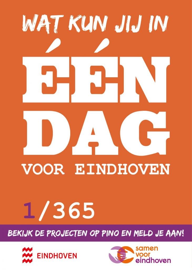 Veel maatschappelijke organisaties in Eindhoven komen menskracht en expertise tekort om elke dag hun doelen te halen. Om de nodige hulptroepen in beweging te krijgen, probeert Samen voor Eindhoven inwoners voor één dag te laten meehelpen. Maandag start de campagne Eén dag voor Eindhoven. Bedrijven en ondernemers wordt gevraagd om één dag hun kennis beschikbaar te stellen of hun handen uit de mouwen te steken voor een maatschappelijke organisatie in de stad.