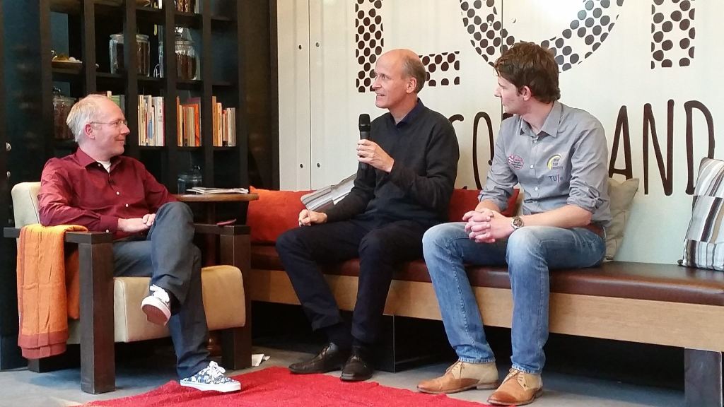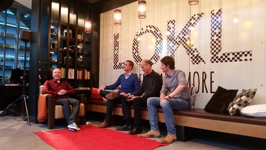 De eerste e52-talkshow vond vandaag plaats in LOKL, het café aan de Strip op de High Tech Campus. Centraal thema was smart mobility; gasten André Snoeck (Solar Team Eindhoven), Werner Marinelli (Productmanager snellaadpalen ABB) en Wim van Thillo (Holst Centre Internet of Things) gaven hun mening over de toekomst van mobiliteit, vooral van de auto.