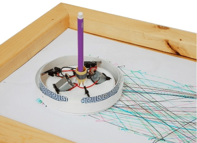 Met een oude yoghurtbeker (neem zelf een lege 1000 ml beker mee) en “ongeveer een tientje aan verdere onderdelen” kunnen kinderen hun eigen robot leren maken en ermee spelen. Voor de hele kleintjes is het vooral dat laatste: de yoghurtbeker kleuren of samen met een robot een tekening maken. Oudere kinderen kunnen zelfstandig aan de slag. Aan het einde van de workshop heb je een robotje dat kan rijden en kan tekenen. Ook kun je oefenen met programmeren door het aan en uit laten gaan van ledlampjes, ze mooie kleuren te geven en – iets moeilijker – het dimmen van de lampjes. Na afloop mag je de robot mee naar huis nemen.