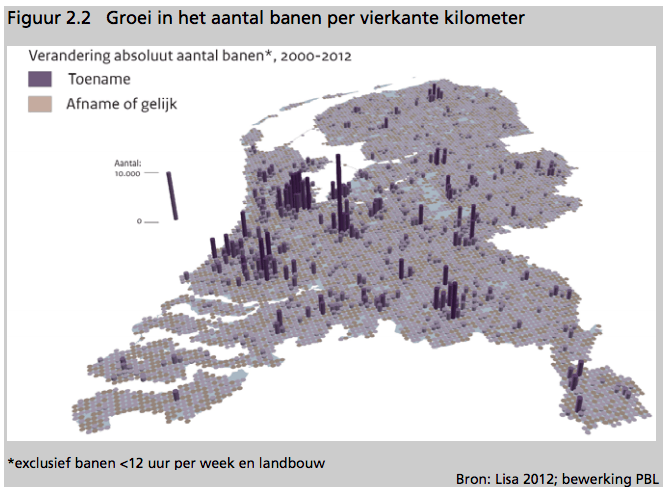 PBL ziet die door het ministerie voorgestelde ruimtelijk-economische ontwikkelingsstrategie tussen de drie grote stedelijke kernregio’s eigenlijk alleen als een theoretische optie. “Dit schaalniveau ligt niet het meest voor de hand. Het grootste deel van de agglomeratievoordelen in Nederland wordt gegenereerd op het niveau van stadsregio’s. Agglomeratievoordelen doen zich daardoor voor het belangrijkste deel voor op het niveau van de drie individuele regio’s.”