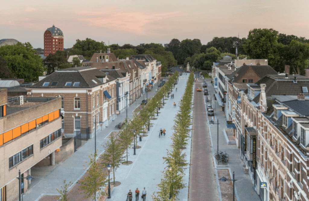 ‘De Groene Loper van Breda, een ontwerp van de gemeente Breda, is een vanzelfsprekend onderdeel van de noord-zuid verbinding in de stad. Dat is een beloning voor de lange termijn visie van de gemeente Breda, om op grote schaal openbare ruimte fundamenteel te verbeteren. De inspiratie voor het ontwerp komt van de klassieke indeling van de Willemstraat in de 19e eeuw en geeft alle ruimte aan de voetganger. Je loopt er bijna aan voorbij, maar het voelt prettig. Dat is waar je als ontwerper naar streeft.’