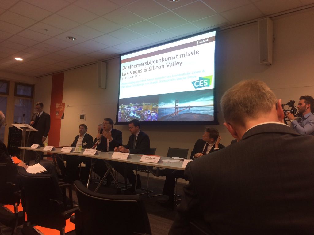 Gisteren, 5 januari trapte de minister de economische missie af met een bezoek aan de CES, de grootste en belangrijkste technologiebeurs ter wereld. Op de beurs worden de nieuwste producten, oplossingen en ontwikkelingen op het gebied van bestaande en nieuwe technologieën gepresenteerd. Er zijn veel Eindhovense startups en bedrijven present, waaronder Amber, VanBerlo, Manus VR, ATO Gear, VDL, Sendcloud, NXP, E-Senses, Liquavista, Shapeways en Utomik. Dit jaar zal er voor het eerst ook een heus Holland StartUp Paviljoen zijn, waarin 30 Nederlandse startups verzameld zijn en zich aan de wereld laten zien.