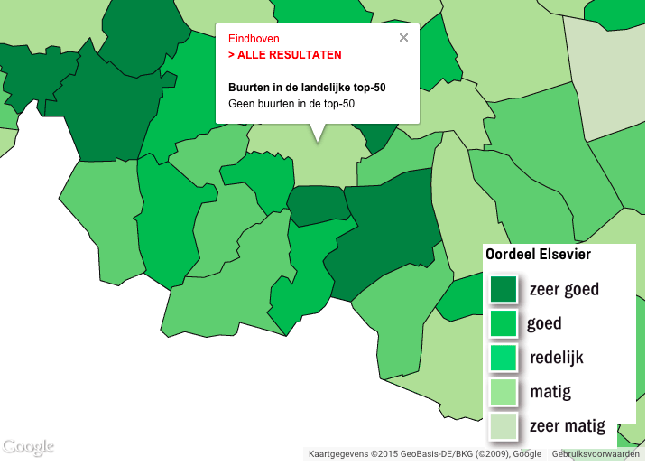 Zelfs de meest wiskundige benadering kan leiden tot een relativeerbaar oordeel. Dus als het weekblad Elsevier (link, via blendle, tegen betaling) op basis van een reeks objectiveerbare criteria tot de conclusie komt dat van de 50 beste buurten in Nederland geen enkele in Eindhoven te vinden is, dan hoeven we ons echt geen zorgen te maken. Nee, zelfs het feit dat heel Brabant maar één top-50-buurt kan produceren (Loonsebaan in Vught staat op een toch nog eervolle 46ste plaats), mag geen probleem zijn.