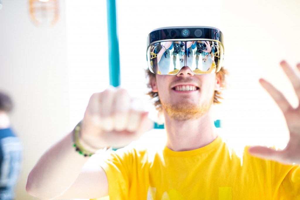 Het is nog maar een prototype, maar Max Otten (22), student Communicatie en Multimediadesign aan de Hogeschool Rotterdam, en Anne Kok (22), student Human-Technology Interaction aan de Technische Universiteit Eindhoven, hebben tijdens hun stage bij Greenhouse Group in Eindhoven met een augmented reality bril precies dit mogelijk willen maken. Met hun ‘kantoor van de toekomst’ willen ze de gezondheidsrisico’s van bureauwerk wegnemen.
