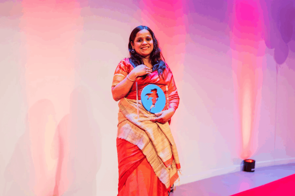 Uit het juryrapport: “Amrita werd geboren in een arm dorp in India waar meisjes niet naar school mochten. Als de rebel die ze was, maakte ze het haar ouders zo moeilijk dat ze haar naar school lieten gaan. Vandaag de dag bezoekt ze nog steeds haar geboortedorp om meisjes te inspireren en hen te vertellen dat zij op een dag ook techhelden kunnen worden.”