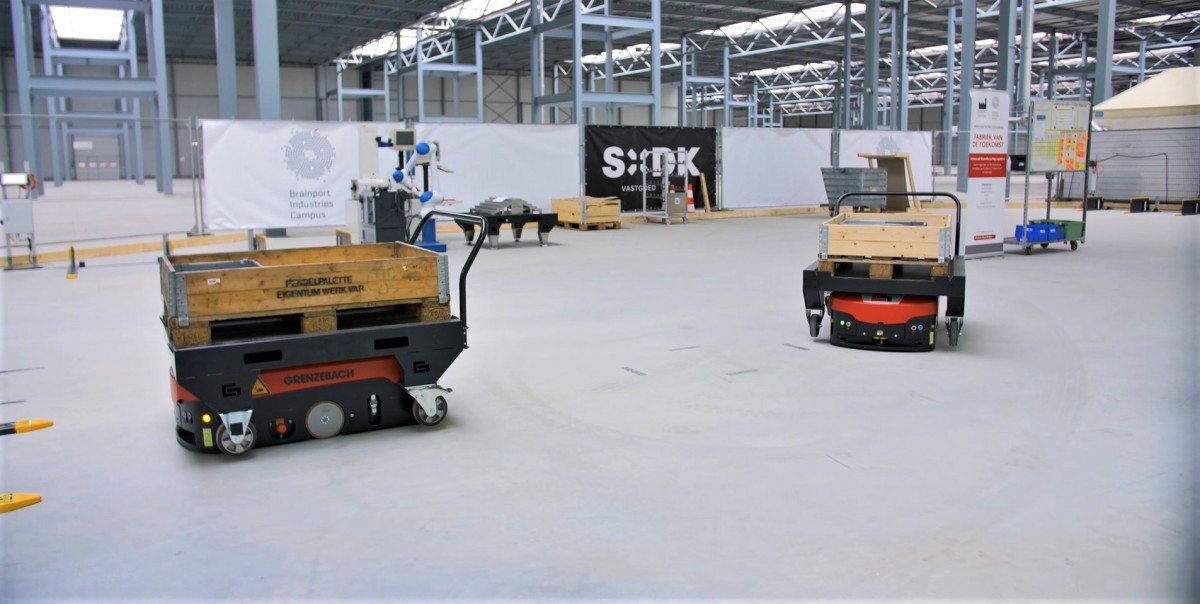 Het Fieldlab Advanced Manufacturing Logistics (AML) lanceert vandaag een real-life testomgeving op Brainport Industries Campus (BIC). In deze testomgeving experimenteert het fieldlab met onder andere AGV’s (Automated Guided Vehicles) en andere robotica. Het doel is kennis verzamelen over alle logistieke processen, zodat bedrijven in de maakindustrie efficiënter kunnen produceren.