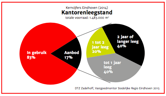 Sinds 2008 is de ontwikkeling van de kantoren stilgevallen en is de leegstand in het kantorencluster opgelopen. Deze situatie is in lijn met het totale beeld van de Eindhovense kantorenmarkt, welke in 2014 een aanbod kende van 253 duizend vierkante meter (17% van de totale voorraad), waarvan 40% langer dan 2 jaar leegstaand.