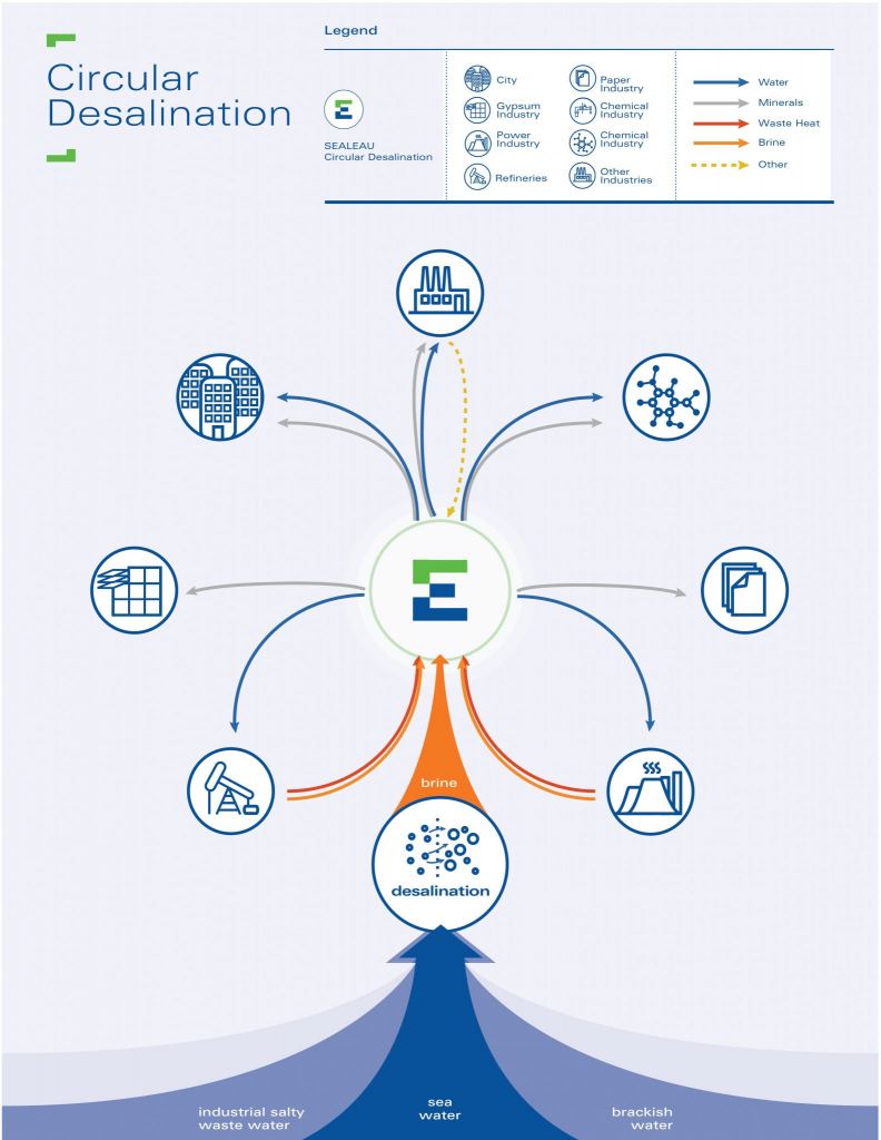 Bedrijven halen nu al zeewater op voor hun fabrieken maar blijven met een zilt overblijfsel zitten. “Ze weten niet wat ze daarmee moeten doen en storten het terug in de zee”, zegt ze. “De Verenigde Naties hebben het terugstorten van vervuild zeewater als een groot probleem bestempeld. Wij pakken het laatste beetje afval en lossen het op, zodat het restproduct volledig bruikbaar wordt en er geen vuil water terug de zee in stroomt.”