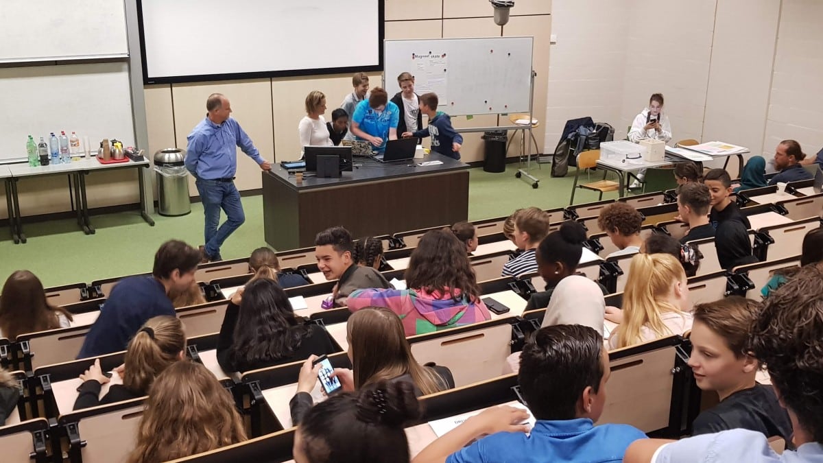 Dat het een Havo2-groep is geworden en niet een hogere klas, heeft ook een reden, zegt Kuipers. “We hebben in dit jaar wat meer ruimte voor projecten, maar belangrijker is dat je niet vroeg genoeg kunt beginnen met de voorbereiding van de leerlingen op die belangrijke overstap naar het hoger onderwijs. Hoe eerder ze daar kennis mee maken, des te beter het is.” Frey is het daar mee eens: “De echte keuzes voor pakketten en profielen is pas het jaar erna natuurlijk, maar juist daarom kan een project als dit behulpzaam zijn. Voor die scholieren is het een perfect moment om te merken wat ze wel of niet leuk vinden. Daarnaast was het natuurlijk niet onbelangrijk dat we juist bij deze klassen heel enthousiaste docenten aantroffen. Zo enthousiast zelfs dat ik verwacht dat zij ook binnen de school het vuurtje wel verder aanwakkeren. Misschien doen we het later dan nog wel met meer klassen.”