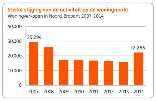 De woningmarkt in Zuidoost-Brabant herstelt. Na een forse toename van het aantal transacties in 2014 zet de groei in 2015 door. In het tweede kwartaal van 2015 lag het aantal transacties in Eindhoven en de omliggende regio 25% hoger dan een jaar eerder. Ook staan huizen duidelijk minder lang te koop. Dat blijkt uit de ING Regiovisie waarover e52 deze week uitgebreid bericht.