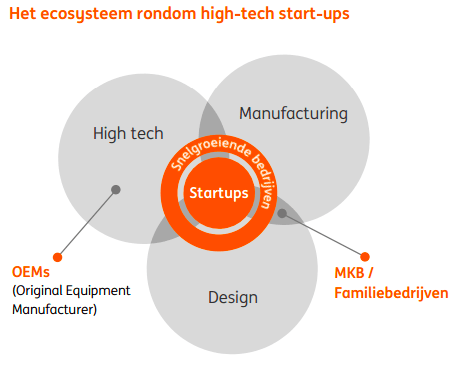Het bewustzijn omtrent de afhankelijkheid van de huidige multinationals is duidelijk aanwezig bij regionale beleidsmakers. Daarom wordt volop ingezet op het faciliteren van nieuwe succesverhalen en een goed start-upklimaat. Huisvesting, kennisdeling en financiering worden ingezet om snelgroeiende bedrijven naar een volgend niveau te krijgen, onder andere via de Start Up Campus Hub. De ambitie in de nieuwe strategie Brainport Next Generation is helder: jaarlijks 1.000 startende bedrijven die 200 kansrijke techbedrijven opleveren. Startups en snelle groeiers verder brengen staat centraal; een koers die al eerder is ingezet via actieprogramma’s zoals NextOEM.