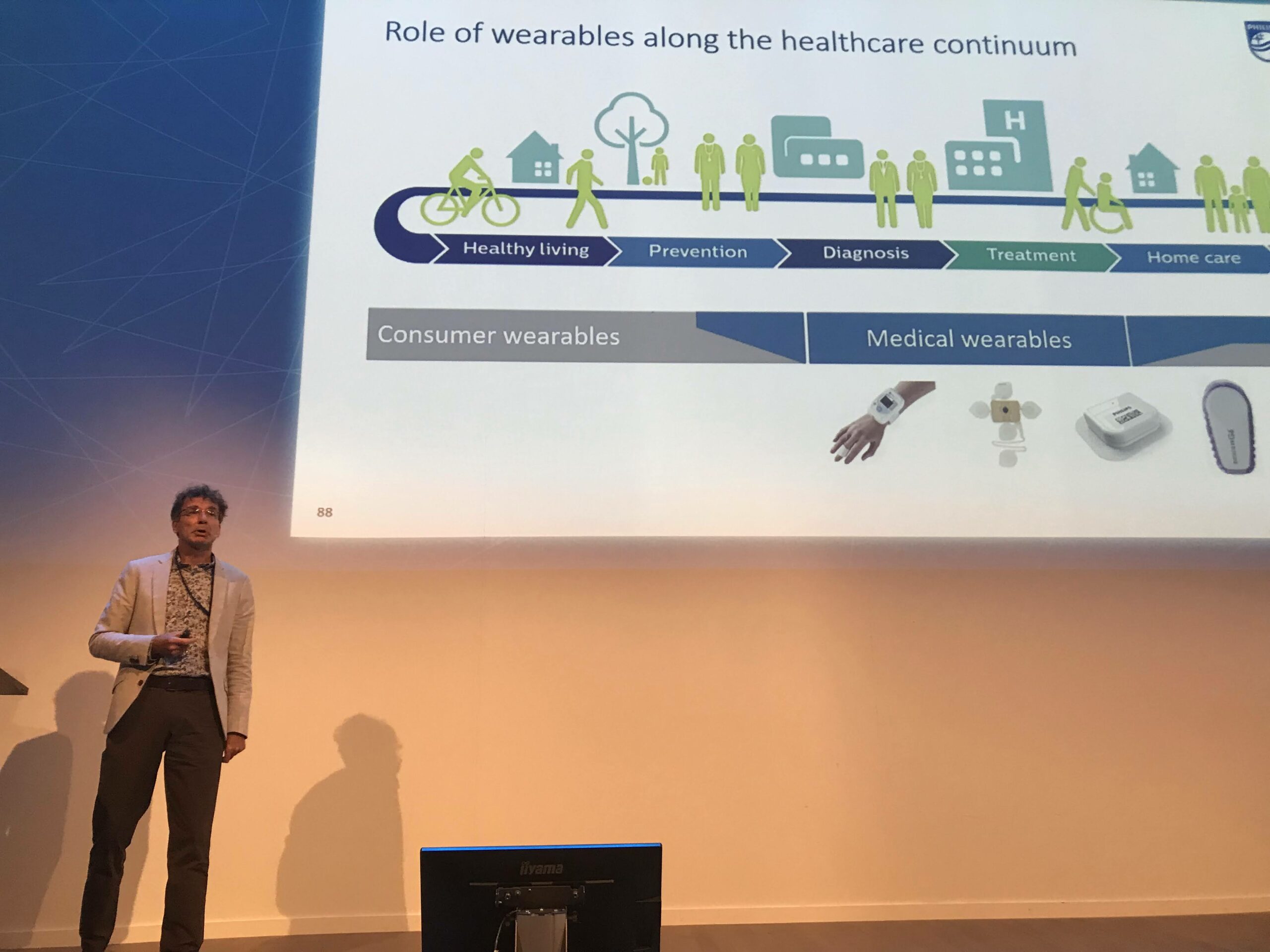 Marko de Jager is Principal Scientist van Medical Wearables for Ambulatory Monitoring bij Philips Research. Hij besprak het belang van het op afstand monitoren van patiënten en het bieden van oplossingen voor de gezondheidszorg. “Een diabetespatiënt kan bijvoorbeeld een glucosemonitor nodig hebben, maar wil misschien ook een activity tracker voorgeschreven krijgen als onderdeel van een zorgprogramma om zijn levensstijl te verbeteren en hem te helpen met zijn ziekte om te gaan”, zei De Jager tijdens zijn lezing. Deze technologieën en ontwikkelingen bieden de mogelijkheid om een nieuwe toekomst voor ziekenhuizen te creëren, waarin zorg wordt verleend voor dringende gevallen, terwijl andere soorten zorg op afstand worden verleend.
