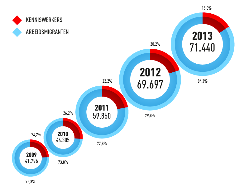 Volgens het Planbureau voor de Leefomgeving telt Nederland in totaal zo’n 100.000 internationale kenniswerkers; dat is 4 procent van het totaal aantal kenniswerkers in Nederland, en ongeveer 1,5 procent van de totale beroepsbevolking. De buitenlandse kenniswerkers die wel in Nederland wonen, concentreren zich vooral in Amsterdam (22%).