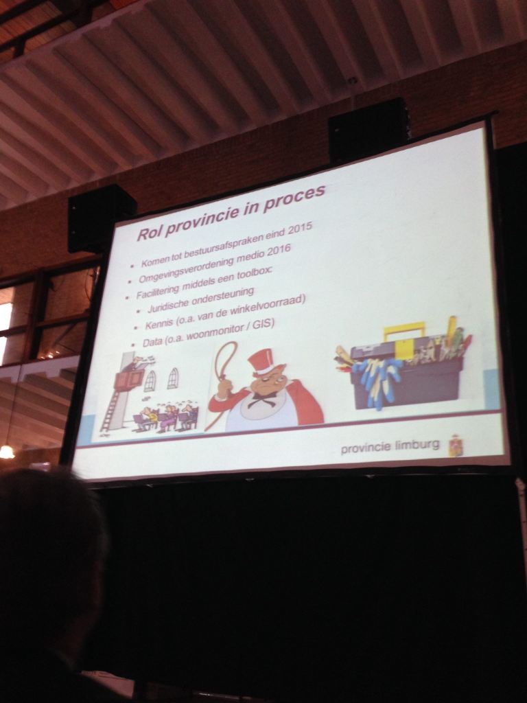 De provincie Limburg kent, met name door de krimp van de bevolking, heel andere omstandigheden – en andere oplossingen. Limburg wil juist dat de gemeenten “in de lead zijn”. Gedeputeerde Hans Teunissen ontwikkelde samen met de 33 gemeenten een Provinciaal Omgevingsplan (POL). “Heel lang werd het urgentiebesef van de krimp weggeschoven: ‘Valt allemaal wel mee, het waait wel over, als we maar meer investeren komen er weer meer mensen en dat levert dan weer economie op.’ Het besef dat er echt iets moest veranderen leidde er in 2013 toe dat de provincie met gemeenten afspraken heeft vastgelegd over hoe wij denken onze fysieke omgeving opnieuw in te richten, met nadruk op de knelpunten die er zijn.” Denk daarbij aan afspraken zoals geen nieuwe solitaire winkelgebieden, geen detailhandel op bedrijventerreinen, wel compacte winkelcentra. “We zullen de komende decennia voor twintig tot dertig procent minder winkels moeten gaan. Voor Limburg staat er, als we niets doen, 500 miljoen euro op het spel. We kunnen dus niet anders.”