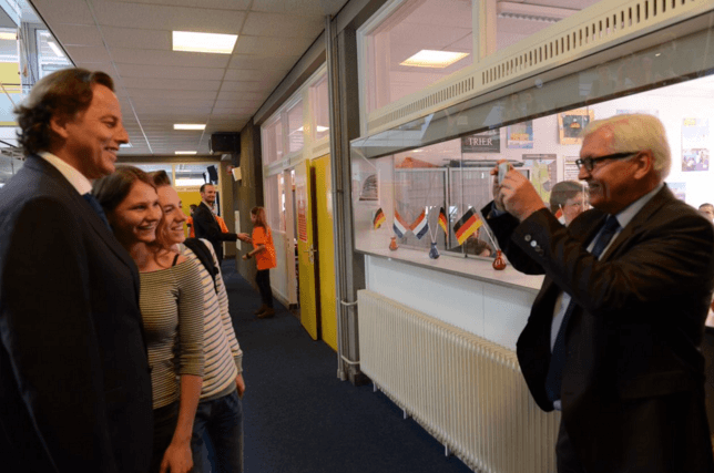 Na het gesprek krijgen Koenders en Steinmeier een rondleiding, ze krijgen met eigen ogen te zien hoe het onderwijs is geregeld. “Er lopen Duitse studenten van de opleiding mee, zodat Steinmeier in zijn eigen taal vragen kan stellen.”
